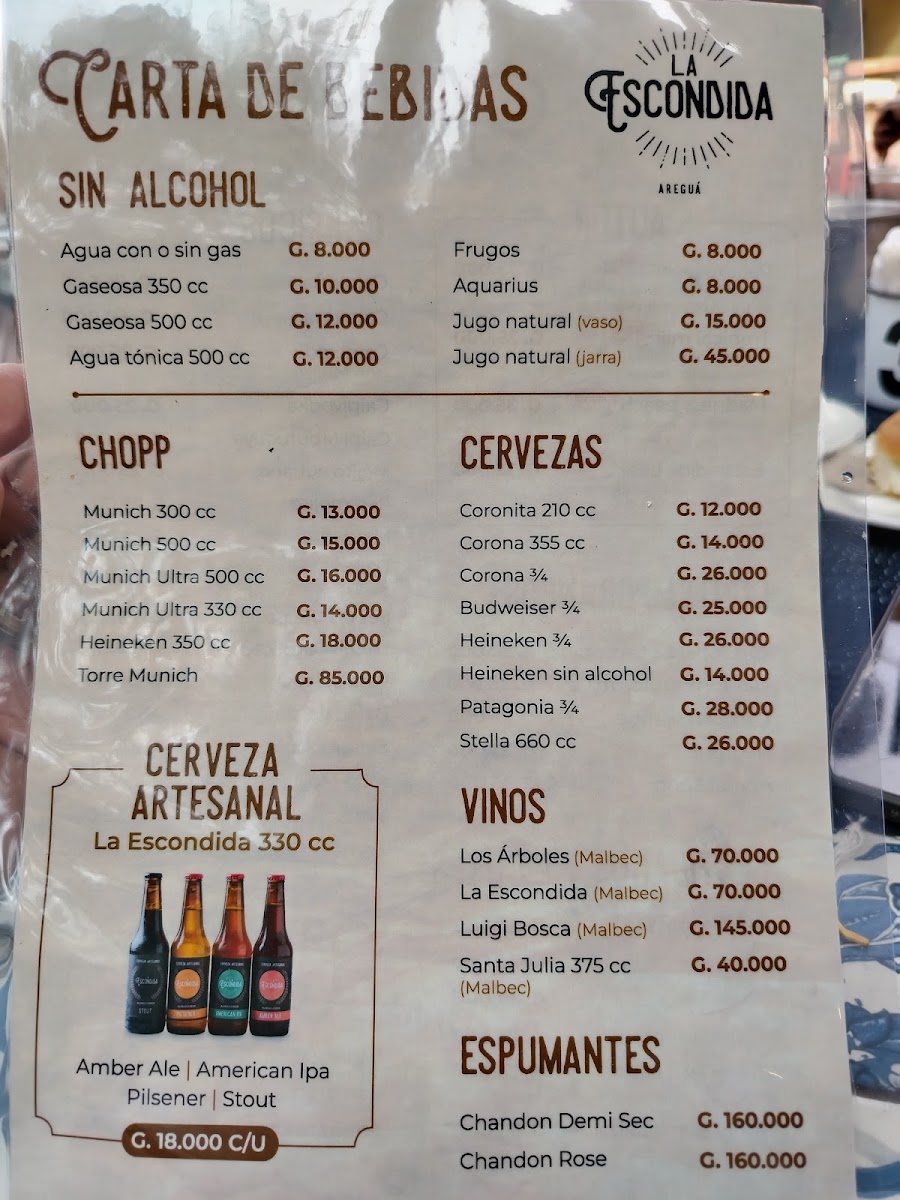 Nestled in the heart of Areguá, La Escondida is a culinary gem that invites diners to enjoy a vibrant outdoor atmosphere. Located at Av. Mariscal Estigarribia, the venue boasts a unique blend of artisan decor and modern design, perfect for capturing memorable moments. Customers rave about the quick service and refreshing beverages, especially during the hot Paraguayan days.
